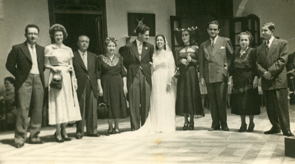 Recuerdo de la familia Vásquez Morelli,. Corresponde al 10 de junio de 1950, en el matrimonio de Camilo Vásquez y Clara Laura y en ella recordamos, de izquierda a derecha a: Amílcar Vergel Cabrales y Elvira Escalante (Padrinos), Cayetano Morelli (padre), Clara Lázaro de Morelli (madre), los novios; Margarita González de Cabrera (Reina de la Marina en Barranquilla), Alfredo Cabrera, Ana María Lázaro (tía) y Cayetano Morelli Lázaro.